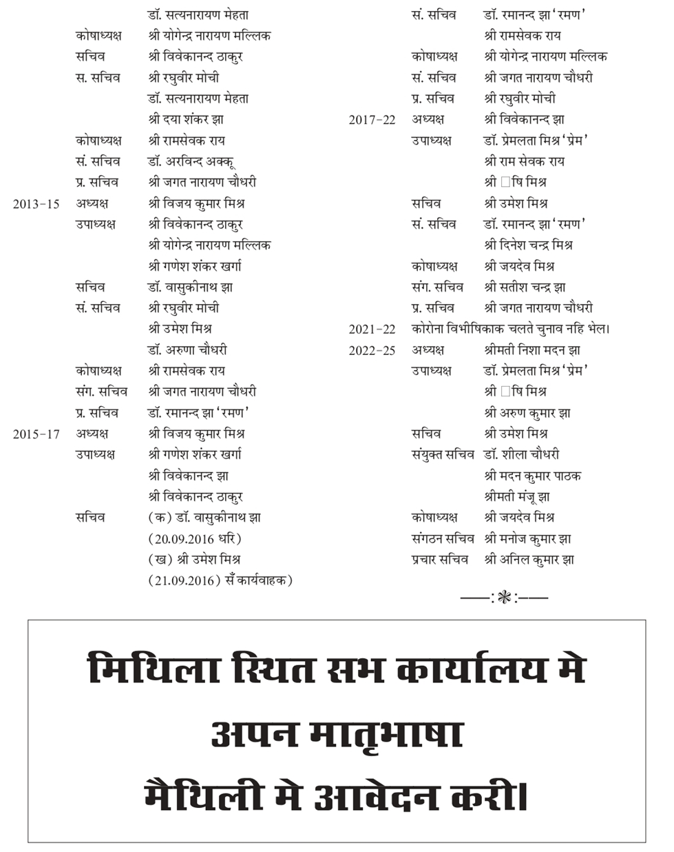 हमारे बारे में > समिति अनुप्राणित अछि