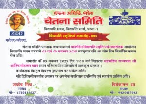 | 4 | बाल प्रतियोगिता कार्यक्रम — राष्ट्रीय चुनाव के ध्यान में रखते हुए 18 अक्टूबर 2025 (शनिवार) को सुबह 10:00 बजे से विद्यापति भवन परिसर में बच्चों के लिए प्रतियोगिताएँ आयोजित की जाएँगी। | 08 अक्टूबर 2025, प्रातः 10:00 बजे |